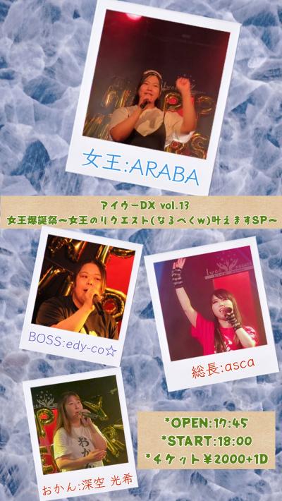 | EVENT | 「アイウーDX vol.13女王爆誕祭〜女王のリクエスト(なるべくw)叶えますSP〜 」 |
