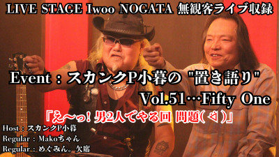 | EVENT | 無観客ライブ収録プレミア公開【スカンクP小暮の"置き語り"Vol.51…Fifty One 「え〜っ! 男2人でやる回 問題( ᐛ )و」】 |